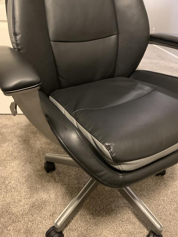 Looking to redesign your home office or upgrade your seating situation at work? Manager's chair offers comfort and complements a contemporary look. 16 reviews this action will navigate to reviews. Shop the full range at your nearest store. The chair is upholstered in a black bonded leather on all seating surfaces and features a comfortcore layered seat construction.